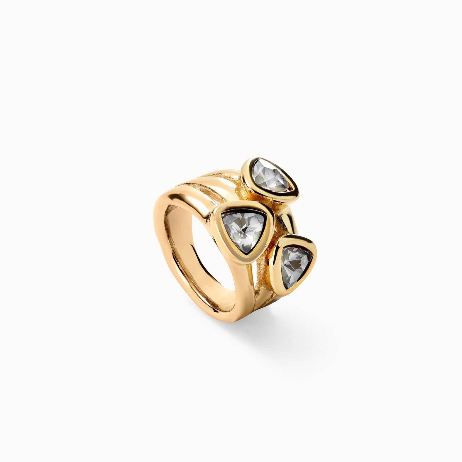 ANILLO CHAPADO 5 MICRAS ORO 3 CRISTALES AZULES CLAROS. SER CAMALEÓNICA