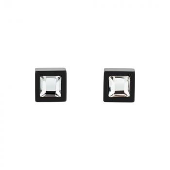 PENDIENTES ACERO CALVIN KLEIN DORMILONA CUADRADA CHAPADA NEGRO CRISTAL TRANSPARENTE